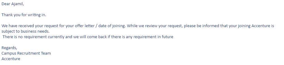 after getting this reply from Campus.Queries@accenture.com will i receive offer letter or Doj ??? can anyone please let me know??